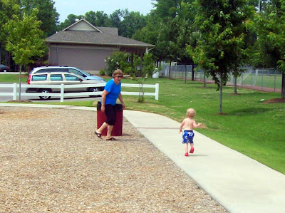 5. Like everyone else on these hot summer days in June we spent a lot of time at the toddler hot spot - Splash Pad. One of those days we met Sharon with her kids, Lauren and Evan. Evan is two weeks older than Dax. Sue Ann, mom's best friend and Lauren and Evan's G-mother was with us also.